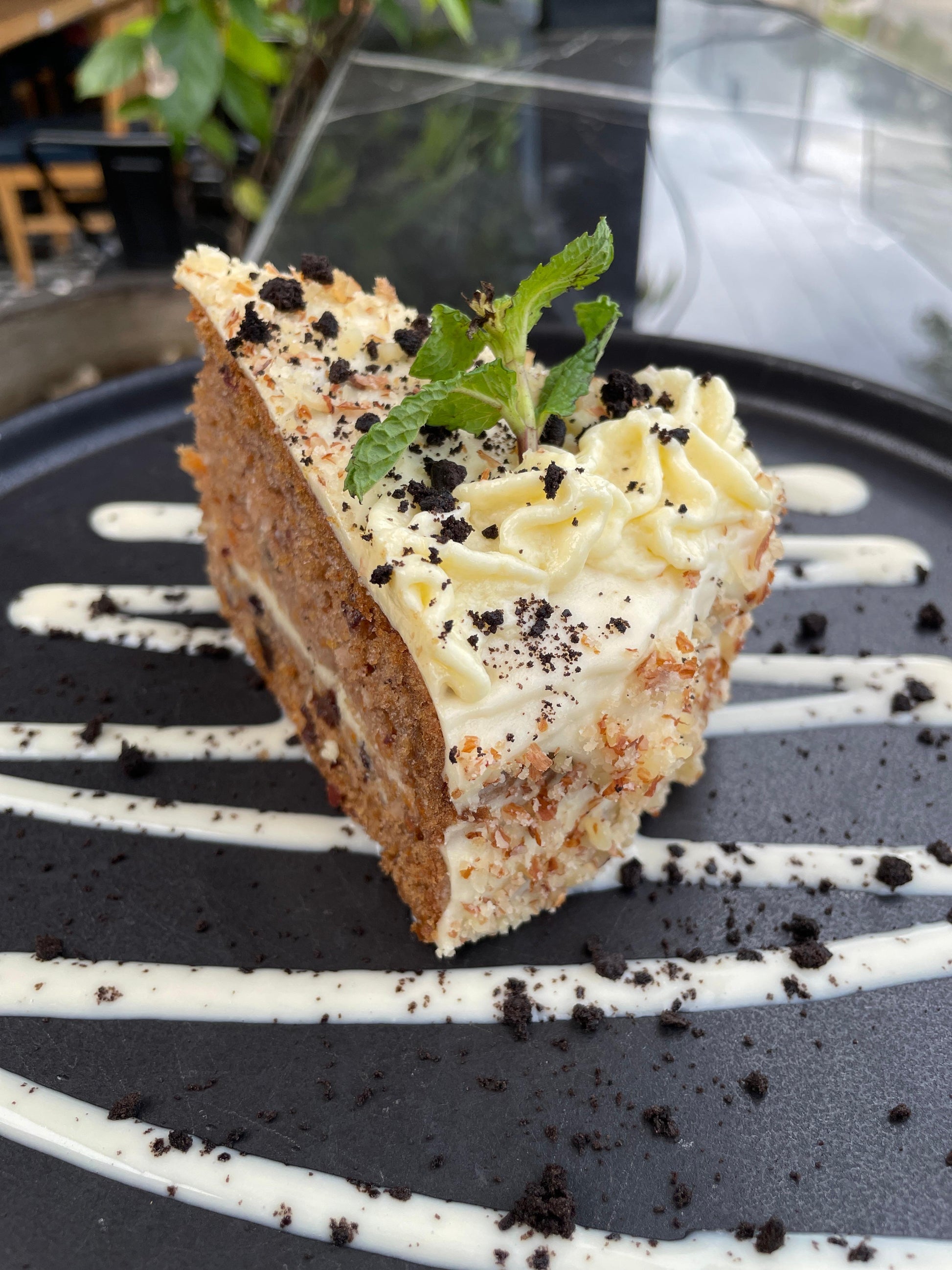 Canela en polvo, Coco deshidratado, Uvas pasas, Almendra, Vainilla, Zanahoria rayada con glaseado de Queso crema.